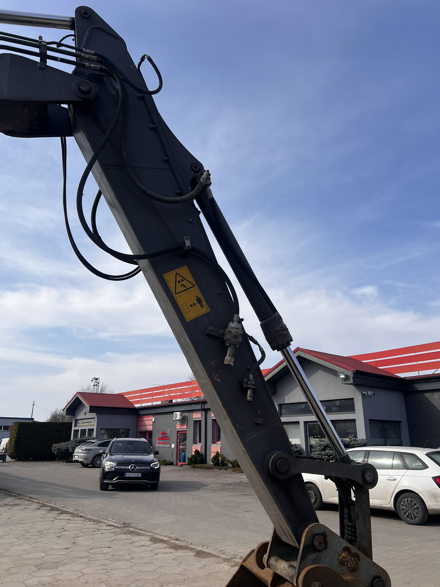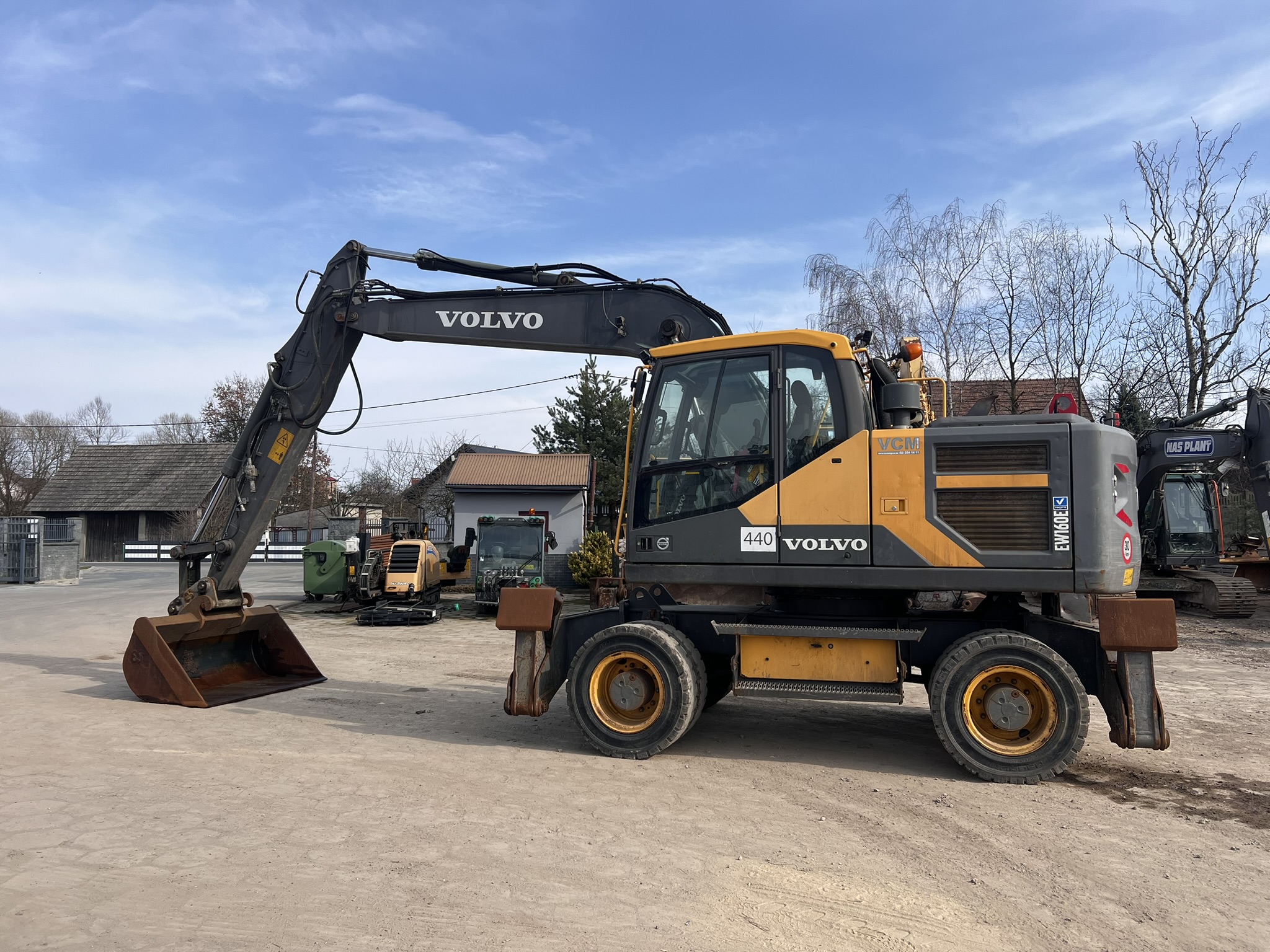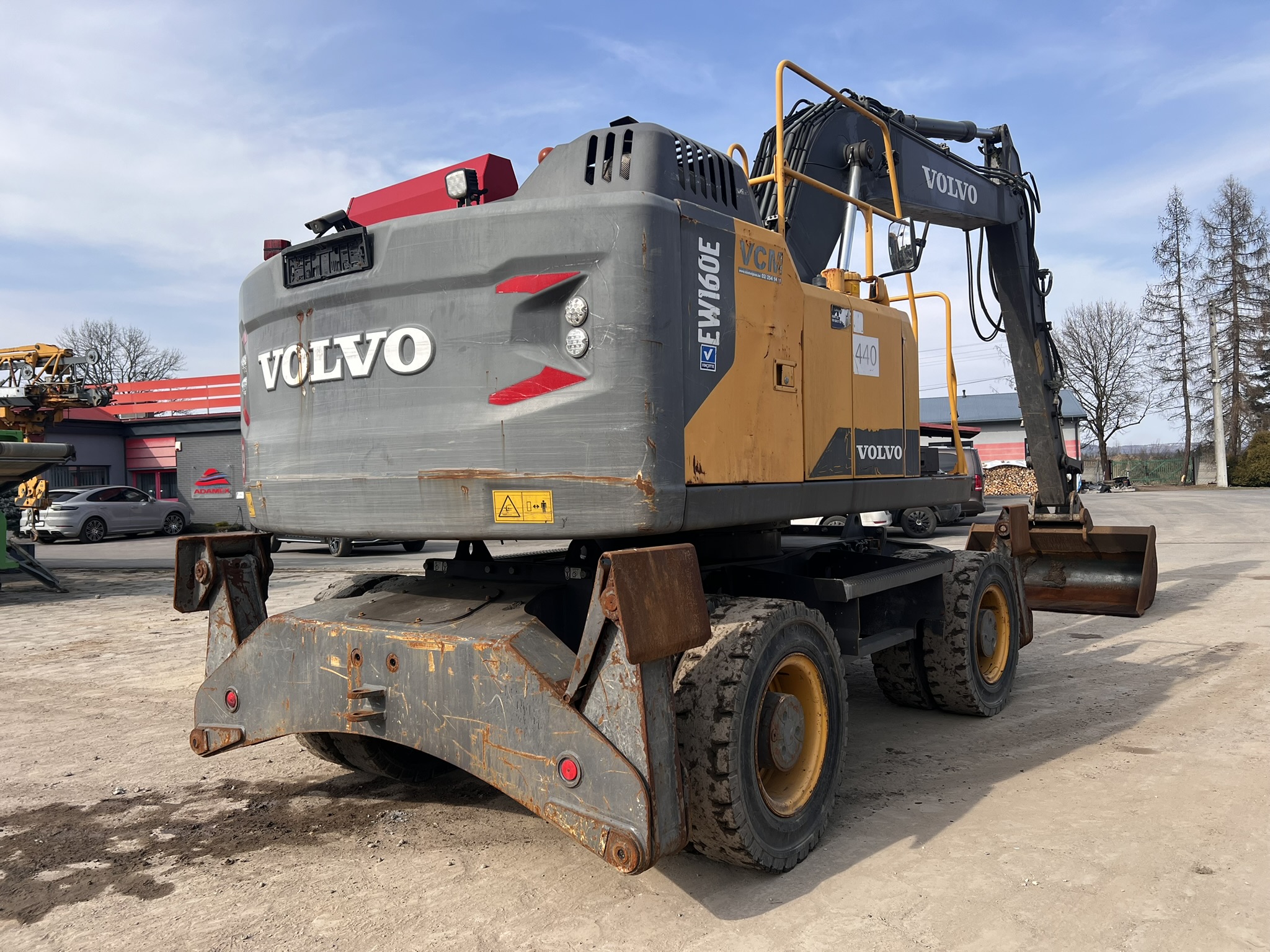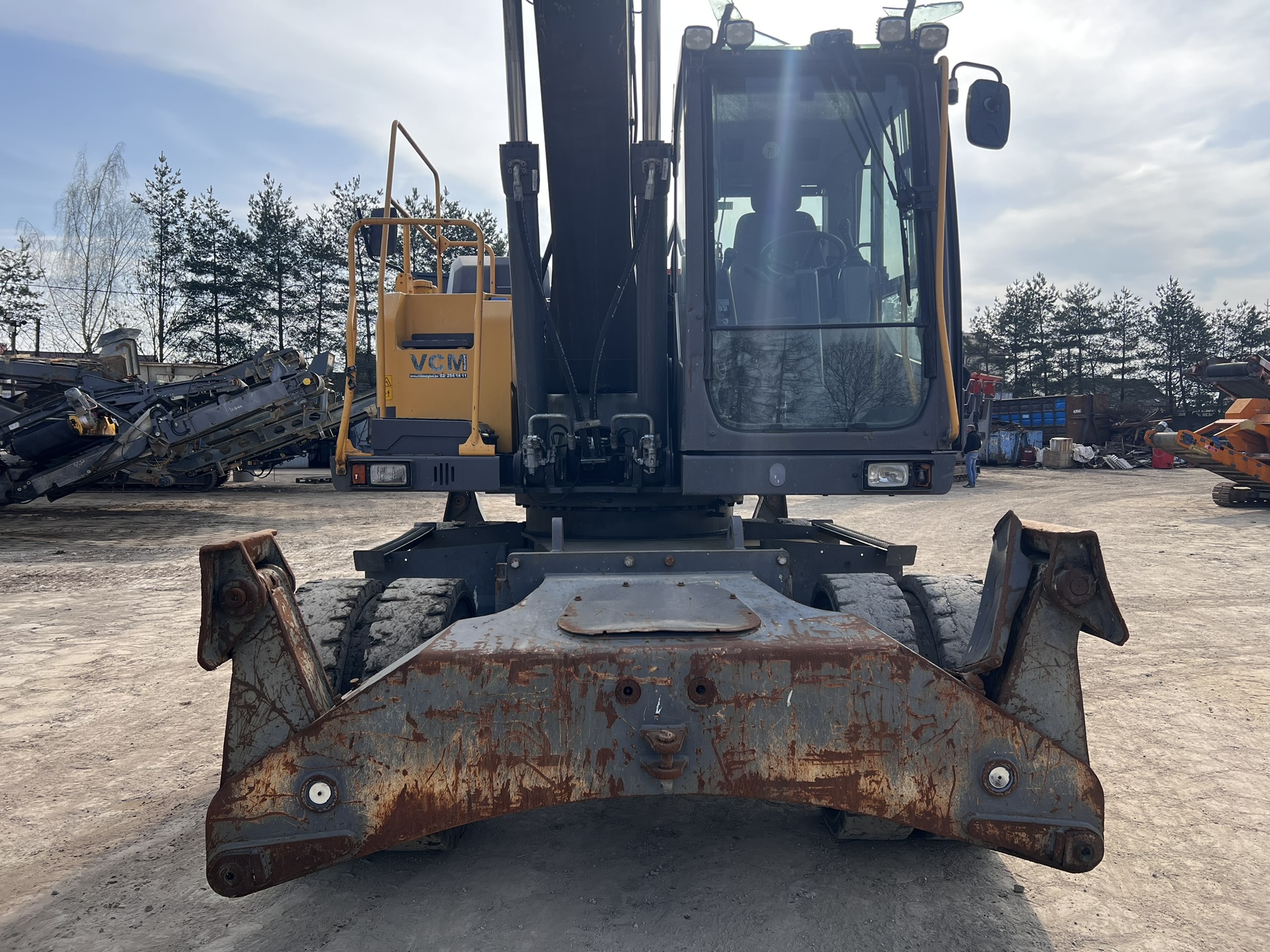 Koparka o wadze 20,5 t., na podwoziu kołowym, sprowadzona z zagranicy. Posiada szybkozłącze CW30, klimatyzację, kamerę, podpory, wyjścia hydrauliczne, centralne smarowanie.
